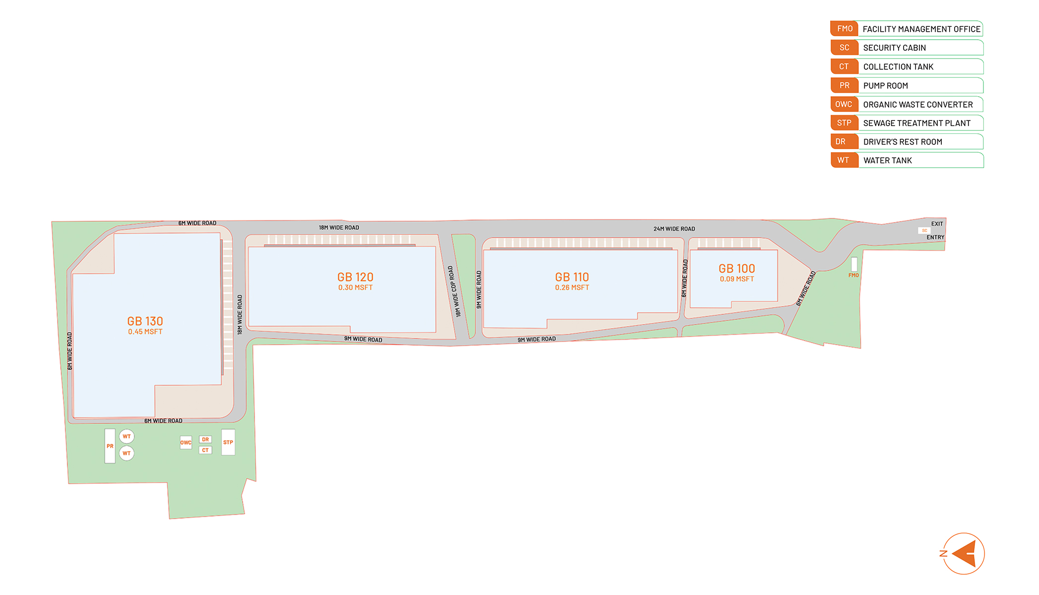 Spanning 37 acres with a development potential of 0.5 million sq. ft., the Greenbase-Horizon Industrial and Logistics Park in Hoskote, Bengaluru Rural District, is strategically positioned along Old Madras Road (NH-75), one of Bengaluru’s fastest-growing industrial and logistics corridors. Located just 10 km from Hoskote town and well-connected to Bengaluru’s consumption hubs, the park provides unparalleled connectivity for businesses looking to scale across South India.