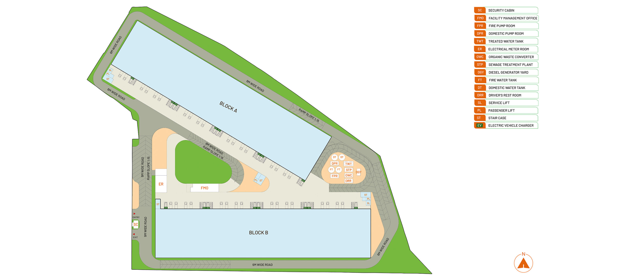 6 mt wide ramps with 1:15 slope