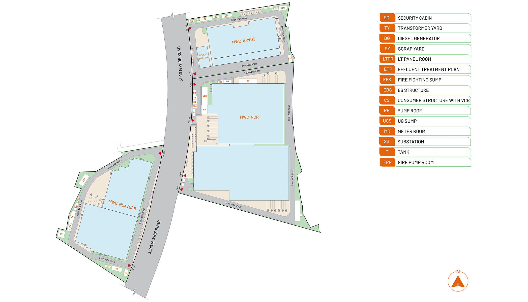 MWC’s established industrial ecosystem spans ~850 acres, housing 62+ global and domestic companies across diverse sectors like automotive, engineering, electronics, and IT. Key players in the area include BMW, Renault-Nissan, Infosys, Pegatron, and Timken Engineering. The location provides businesses with proximity to SEZ and DTA in the same township.