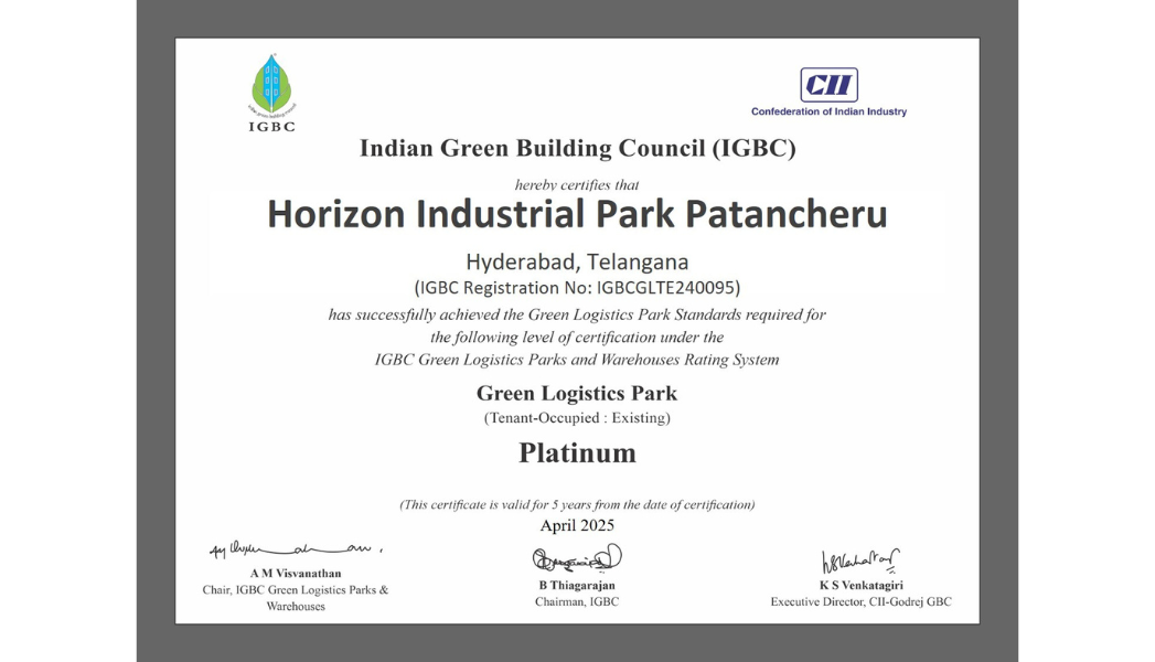 Built with essential business facilities and in compliance with local and international building construction and safety standards, Horizon Industrial Park Patancheru is Grade A park that offers endless possibilities. This park has been platinum certified by IGBC.